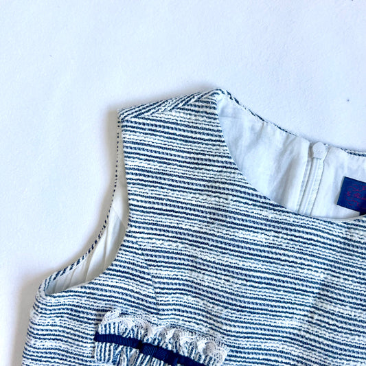 (Pre-loved) Polo Ralph Lauren Navy Girl Striped-Bow Ponte Dress 女童長袖蝴蝶結連身裙 5Y