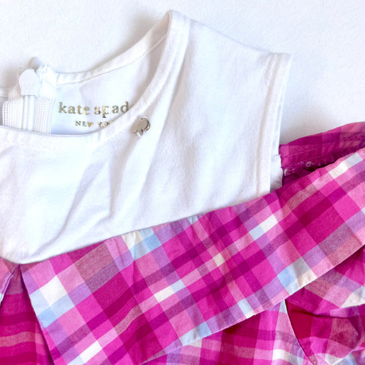 (Pre-loved) Kate Spade Pink Short Sleeves Dress 粉紅格仔短袖連身裙 6Y 120cm